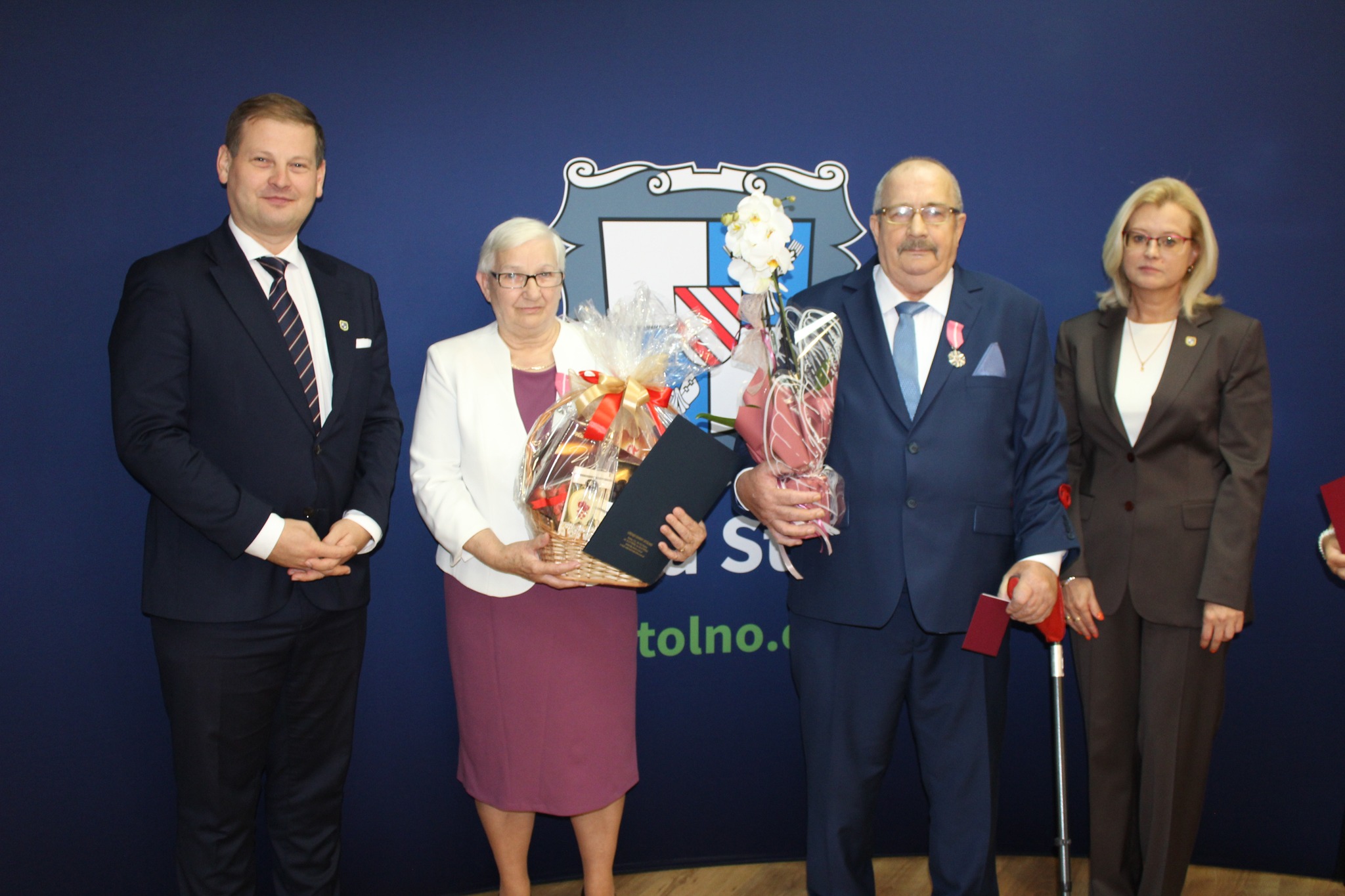 Uroczystej dekoracji Dostojnych Jubilatów dokonał Wójt Gminy Stolno Pan Paweł Pudrzyński wraz z Zastępcą Wójta Gminy Stolno Panią Ewą Wirosławską.